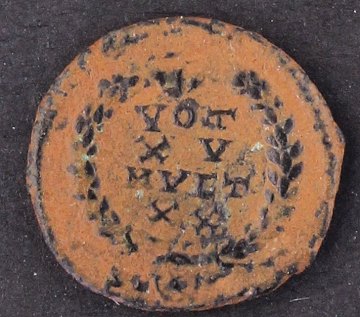 Forside: portræt af Constans mod højre iført perlediadem. Omskrift: DN CONSTAN-S PF AVG.