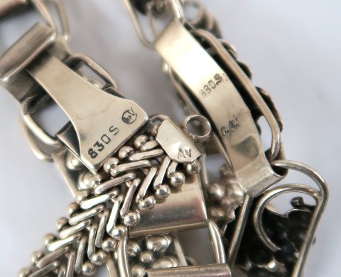 Par vintage armlænker af sølv med mønstrede led samt nyere fiskeben armlænke af sølv. L. henholdsvis 21, 18 og 17,5 cm., samlet vægt 61 gr.