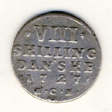 Frederik IV, 8 skilling 1727 - H.16 - SJÆLDEN