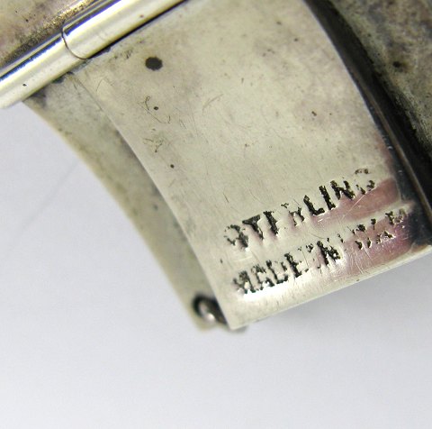 armlænke af sterling sølv, prydet med niello dekorationer i form af danserinder og orientalsk symbolik. L. 17 cm.