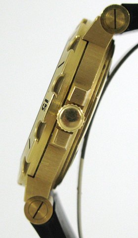 Bulgari Diagano Professional Acqua Automatic i urkasse af 18 kt. guld, Ref. SD38G - sort skive med punktindeks, justerbar lynette, datoangivelse ved 3" position, safirglas, monteret med sort gummirem med originalt Bvlgari spænde i 18 kt. guld. Automatisk urværk. Urkasse diameter 40 mm.