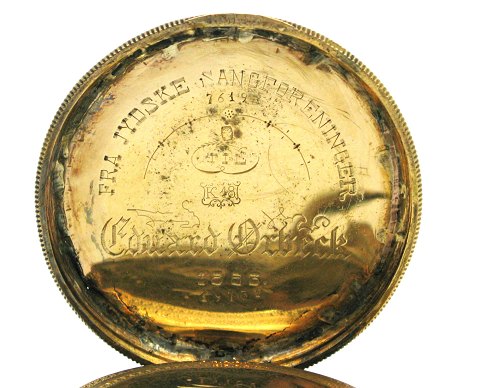Engelsk lommeur i kasse af guld - 18 kt. fra 1883. Værket er med Breguet spiral og er i meget fin stand - . Skiven har få men meget små "hairlines"