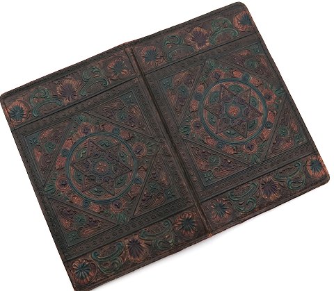 Samling sedler ilagt flot præget og farvelagt skindpung med davidstjerne.