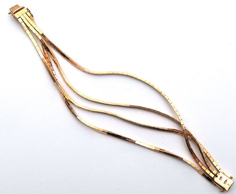 Fire radet armlænke af 18 kt. guld med teglstensformede led. L. 19,5 cm., vægt 32 gr.
