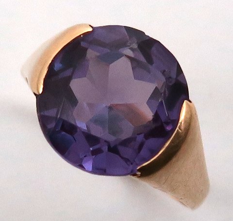 Ring af 14 kt. guld, prydet med facetsleben ametyst, diameter ca. 12 mm. Ring Str. 58, samlet vægt 3,9 gr.