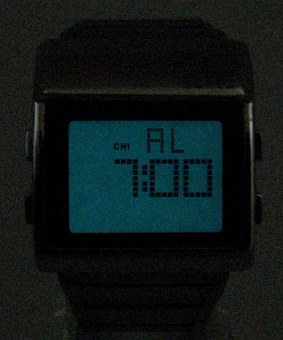 Kraftig urkasse af stål 41 x 44,5 x 13 mm. Buet mineralglas. Vandtæt til 3 atm.Uret har flere funktioner, som stopur, nedtæller og alarm. Blåt baggrundslys.