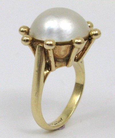 Fingerstørrelse 50 - vægt ca. 9 gr. - perlens diameter 14,5 mm