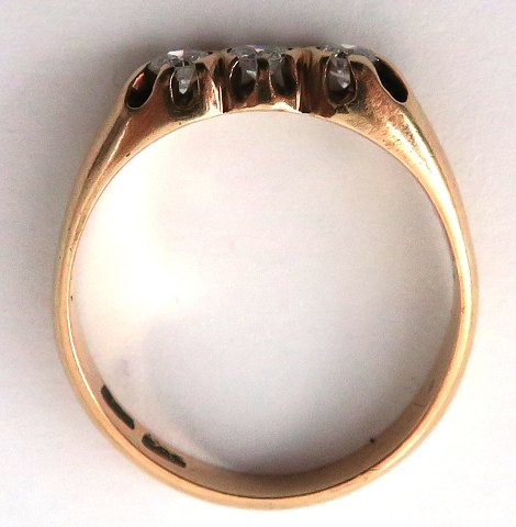 Ring af 14 kt. guld, prydet med tre brillantslebne diamanter på tilsammen ca. 0,45 ct. Ring Str. 59½, vægt 4,1 gr.