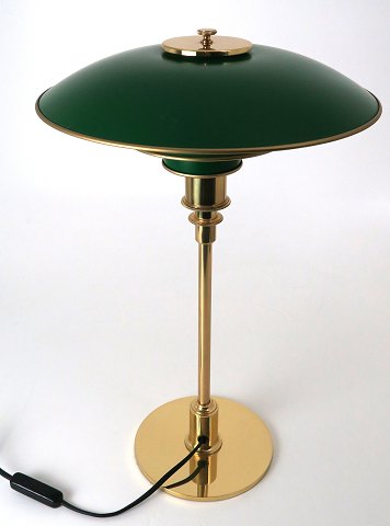 Poul Henningsen (1894-1967) PH 3/2 bordlampe. Udført i messing med grønlakerede metalskærme. Fremstillet hos Louis Poulsen i limiteret udgave. H. 45 cm.