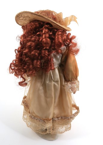 Franklin Mint, dekorationsdukke, H 42 cm. af porcelæn med krop af stof, iklædt tøj i stilen fra tiden omkring år 1900.