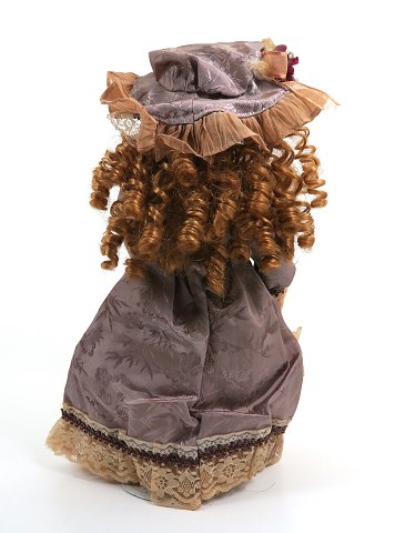 Franklin Mint, dekorationsdukke, H 43 cm. af porcelæn med krop af stof, iklædt tøj i stilen fra tiden omkring år 1900.