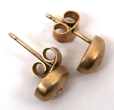 Par ørestikker af 14 kt. guld, hver prydet med hvid safir. L. 8 mm., samlet vægt 1,7 gr.