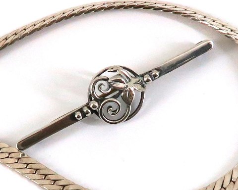 Halssmykke af sterling sølv, L. 45 cm. samt jugendbroche af sølv, L, 60 mm., sølvvægt 31 gr.