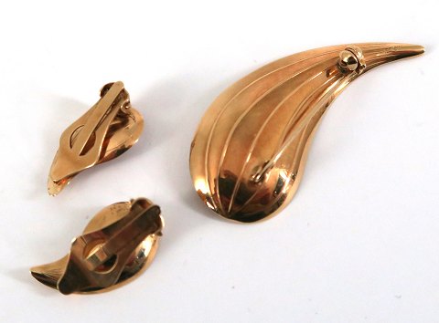 Hver prydet med kulturperle 2x 3½ og 5 mm. Broche L. 50 mm., samlet vægt 6,5 gr.