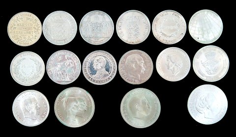 Samling med 2, 5 og 10 kr erindringsmønter af sølv, årstal 1888-1972 (16)