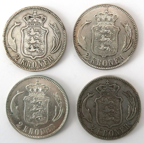 Christian IX / Christian X, 2 kr sølv 1875, 1876, 1915, 1916. (4)