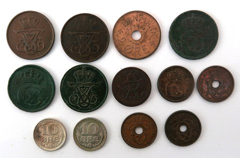 Lot bestående af Frederik VI, ½ R.B.S.K., Christian X, 1 øre 1921, 2x 10 øre sølv 1914 og 1917, 2x 1 øre 1926 og 1 øre 1937, 2 øre 1916 og 1920, 25 øre 1927 samt Frederik VIII, 2 øre 1912 samt 2x 2 øre 1907