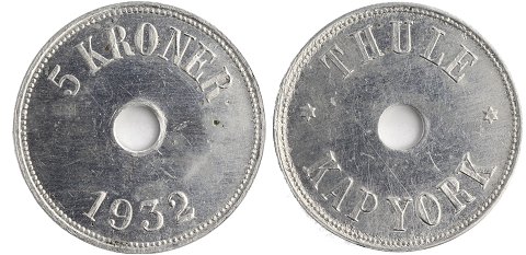 Thule, Kap York, komplet sæt, 10-25-100-500 øre 1911 samt 5-10 kroner 1932