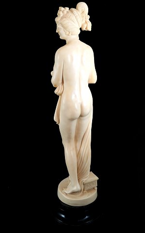 Italiensk dekorationsstatuette af alabaster i form af Aphrodite på rund sokkel af sortbemalet træ. H. med sokkel 80 cm., vægt 10,460 kg.