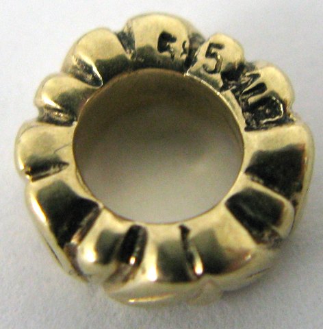Pandora charm af 14 kt. guld med struktureret skinne, diameter 8,7 mm, vægt 1,6 gr.