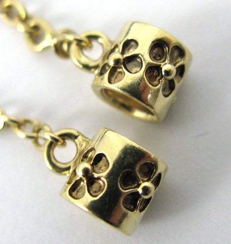 Pandora, dobbelt charm af 14 kt guld i form af to segmenter med sammenhængende kæde, L. med kæde 75 mm., vægt 2,9 gr.