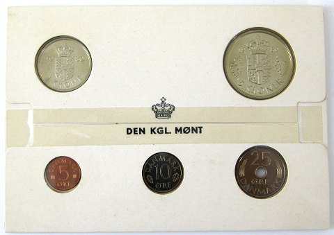 Møntsættet indeholder samtlige mønter i Danmarks møntserie fra 1980: 5- og 1-kr samt 25-, 10- og 5 øre