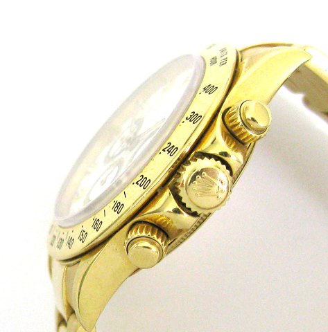 Herrearmbåndsur fra Rolex, model Daytona, ref.nr.: 16528, i urkasse og med oysterlænke af 18 kt. guld. Safirglas. Hvid skive med punktindeks hvorimellem arabertal, besat med brillantslebne diamanter. Separat sekundviser, dag og datovisning samt chronograph funktion. Automatisk urværk. Ø. 40 mm. Serie X66xxxx fra 1991