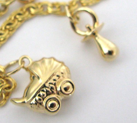 Bismarck armlænke med charms i form af sut og barnevogn, L. 14 cm. (Baby størrelse). Vægt ca. 5 gr.