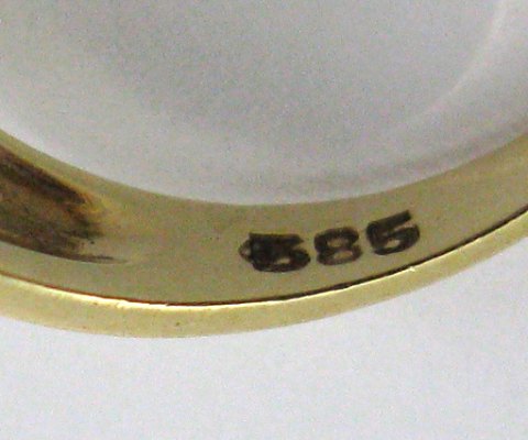 Ring af 14 kt. guld med blå, facetslebne sten