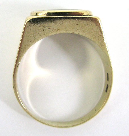 Herrering af 8 kt. guld, prydet med blankpoleret onyx, Ring Str. 71, vægt ca. 9 gr.