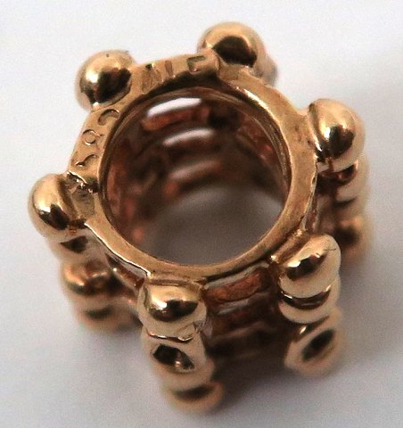 Pandora charm af 14 kt guld med brillantsleben diamant på 0,005 ct. L. 8,5 mm., vægt 1,5 gr.