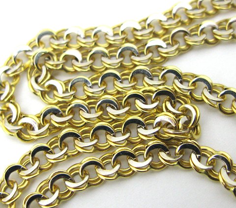 Bismarck halskæde af 14 kt guld med segmenterede led som giver farvespil, L. 48 cm., vægt ca. 9 gr.