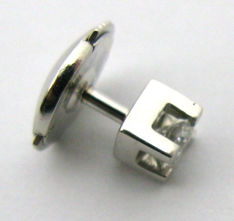 Slipsenål (knap) af 14 kt. hvidguld, prydet med brillantsleben diamant på 0,20 ct. Samlet vægt ca. 1 gr.