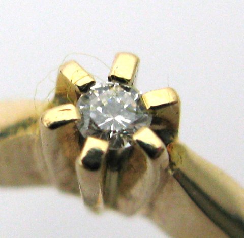 Ring af 14 kt. guld, prydet med brillantsleben diamant på ca. 0,02 ct., vægt ca. 2 gr. Ring Str. 50½