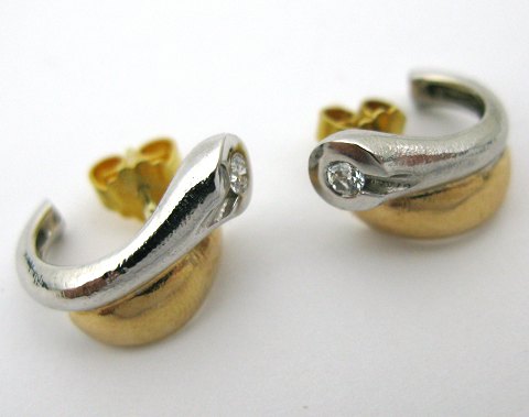 Ole Lynggaard, par ørestikker af 14 kt. tofarvet guld. hver prydet med brillantsleben diamant, samlet ca. 0,12 ct. L. 17 mm., samlet vægt ca. 7 gr.
