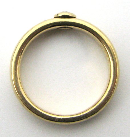 Ring af 14 kt. guld, prydet med brillantsleben diamant på ca. 0,06 ct., samlet vægt ca. 6 gr. Ring Str. 52
