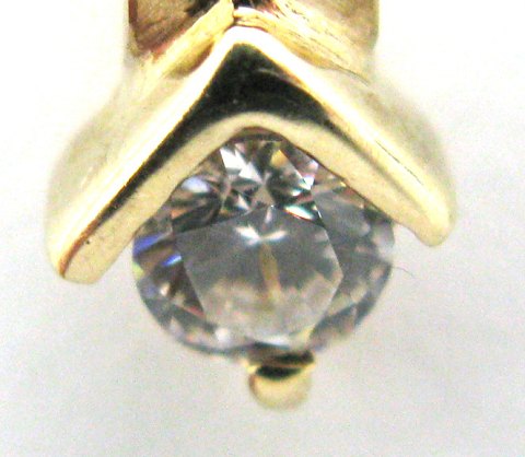 Vedhæng af 8 kt. guld, prydet med hvid sten, L. 10 mm., vægt ca. 1 gr.