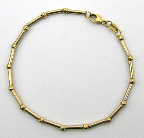 Armlænke af 18 kt. guld med stavformede led, hvorimellem guldperler. L. 18 cm., vægt ca. 5,5 gr.
