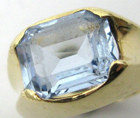 Ring af 14 kt guld, prydet med facetsleben aquamarin på 8 x 10 mm. Ring Str. 47½, samlet vægt ca. 5 gr.