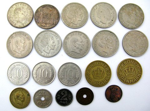 Lot bestående af 2 kr sølv 1930, 5 kr sølv 1964, 5 kr 1961, -62, -71, -74, -76, -77 og 2x 1979, gul 2 kr 1926 og 1939, gul 1 kr 1953, 25 øre 1929, 2 øre 1927, -29 og det bedste årstal 1918.