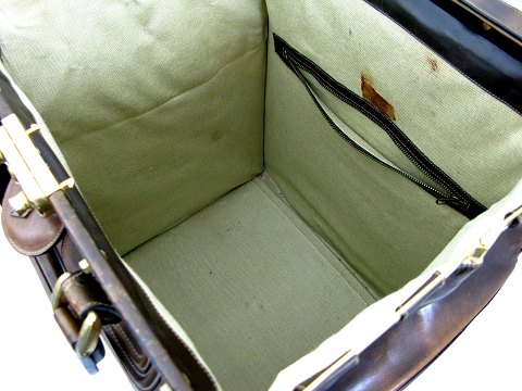 Jordemodertaske af kraftig læder med messingbeslag