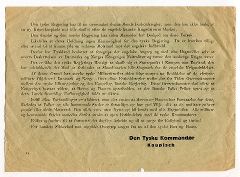 OPROP! Originalt eksemplar af flyveblad, nedkastet af tyskerne ved besættelsen af Danmark den 9. april 1940