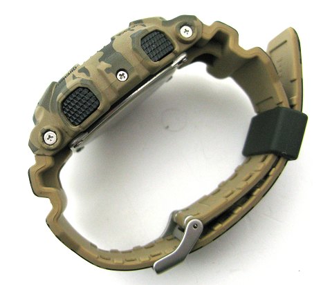 Casio G-Shock herrearmbåndsur i camouflage urkasse af kunststof/stål. 2-D skive med analog og digital tidvisning, sekundviser, tidszoner samt chronograph funktioner. Quartsværk. Urkasse diameter 48 mm. Rem af kunststof med metalspænde.