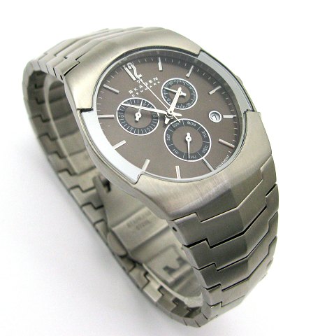 Skagen herrearmbåndsur i urkasse og med lænke af stål. Metallic tonet skive med stregindikation, central sekundviser samt separat dag, dato og chronograph funktion. Quartzværk. Urkasse diameter 39 mm.