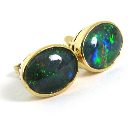 Par ørestikker af 14 kt. guld, prydet med polerede, ovale opaler 9 x 7 mm., samlet vægt ca. 2,4 gr.