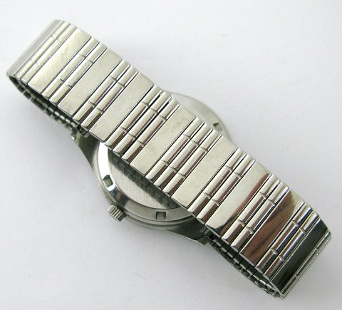 Omega Genève Automatic herrearmbåndsur, ref. nr. 166 0 168 i urkasse og med flexlænke af stål. Grå metallic skive med stregindikation, central sekundviser samt datovisning i #3 position. Automatisk værk. Urkasse diameter 37 mm.