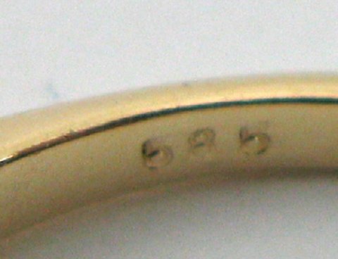 Rækkering af 14 kt. guld, prydet med 7 brillantslebne diamanter på tilsammen ca. 0,20 ct. Ring str. 56, samlet vægt ca. 3 gr.