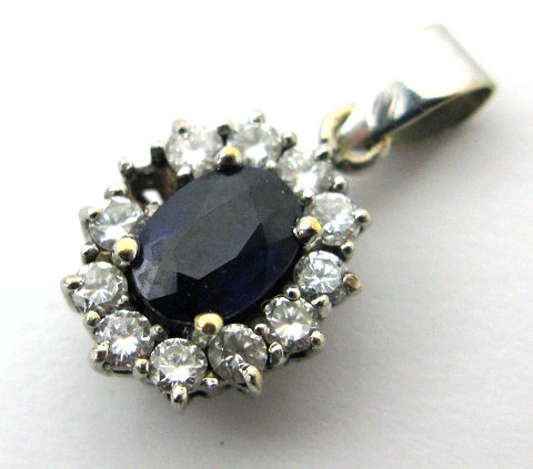 Vedhæng af 14 kt. hvidguld med blå safir og brillanter 0,35 ct.