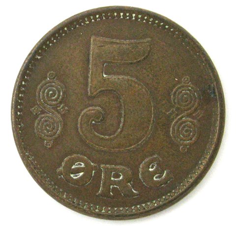 5 øre, 1923, Christian X, bronze, Sieg 3.4, H 14B
