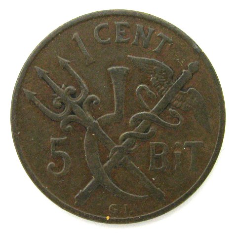 Dansk Vestindien, 1 cent/5 bit, 1905, Christian IX